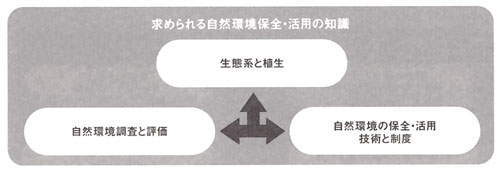 土地や空間をデザインする上で、自然の要素を主たる対象物として扱うことが、ランドスケープアーキテクトと土木技術者・建築設計者の大きな相違点です。したがって、ランドスケープアーキテクトには、緑・水・土地等の自然の要素を「命ある素材」として活用するデザイン能力と、生態学的原理に基づく土地利用や生態系の構造・機能を活かした環境デザイン能力が求められます。このように、自然的側面に関わる項目はランドスケープアーキテクトの骨格となる部分であり、業務を進める上で最も重要な技術となるものです。
