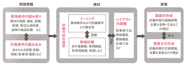 敷地計画とは、敷地が持つ特性を読み取りながら、計画において求められる機能をうまく調和させて配置する技法であり、その複合的な検討結果を端的に図として表現したものが「敷地計画図」です。敷地の諸特性は、地形や植生・気候などの自然的特性や、周辺開発やインフラにかかわる社会的特性、その他人文歴史特性や景観的特性など、多様かつ複合的です。一方、計画において求められる機能も多岐にわたります。「敷地計画図」をきちんと描けるということは、ランドスケープアーキテクトとしてのこれからの複雑な問題を解明するための「整理」と「試行」を進めることができることであり、最終的にはその結果を第三者にきちんと「伝達」できることの証しといえるでしょう。